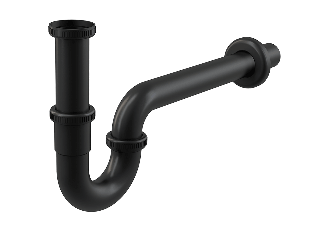 Сифон для умывальника D32 цельнометаллический, U-образный с накидной гайкой 5/4", черный-мат.