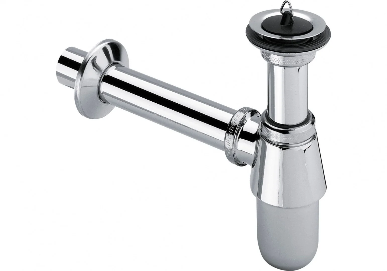 Сифон бутылочный для умывальника 1 1/4 x 32 мм, верхняя розетка из нержавеющей стали, пробка, отводящий патрубок длиной 200 мм.