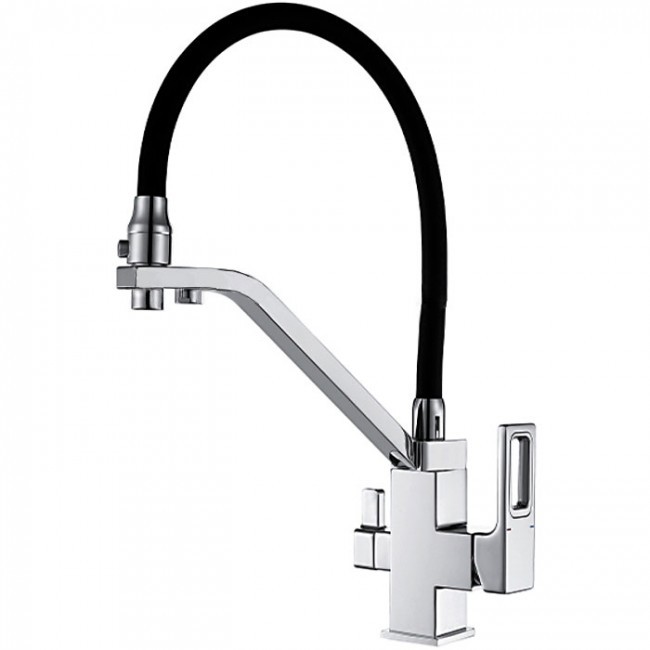 Приобрести gappo смеситель для кухни g4318 с фильтром и гибким изливом, хром/черный 34712