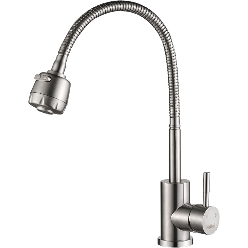HAIBA Смеситель для кухни 406 мм, гибкий излив, серый\хром HB-72505