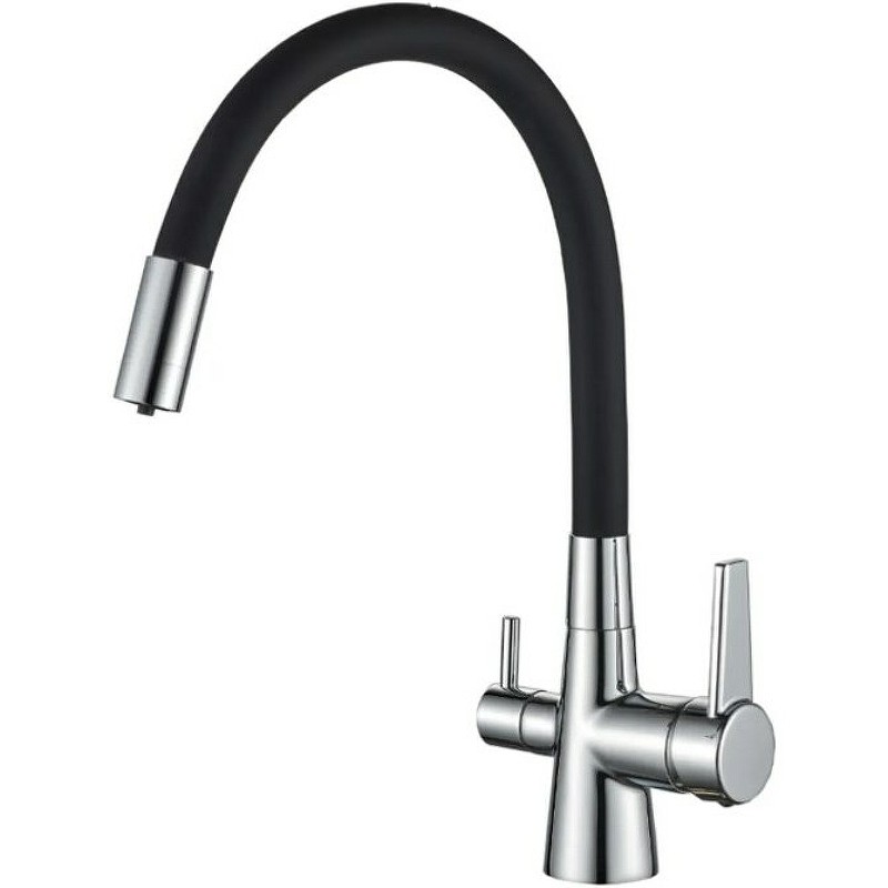 HAIBA Смеситель для кухни 370мм, гибкий излив, черный\хром HB-76858-7