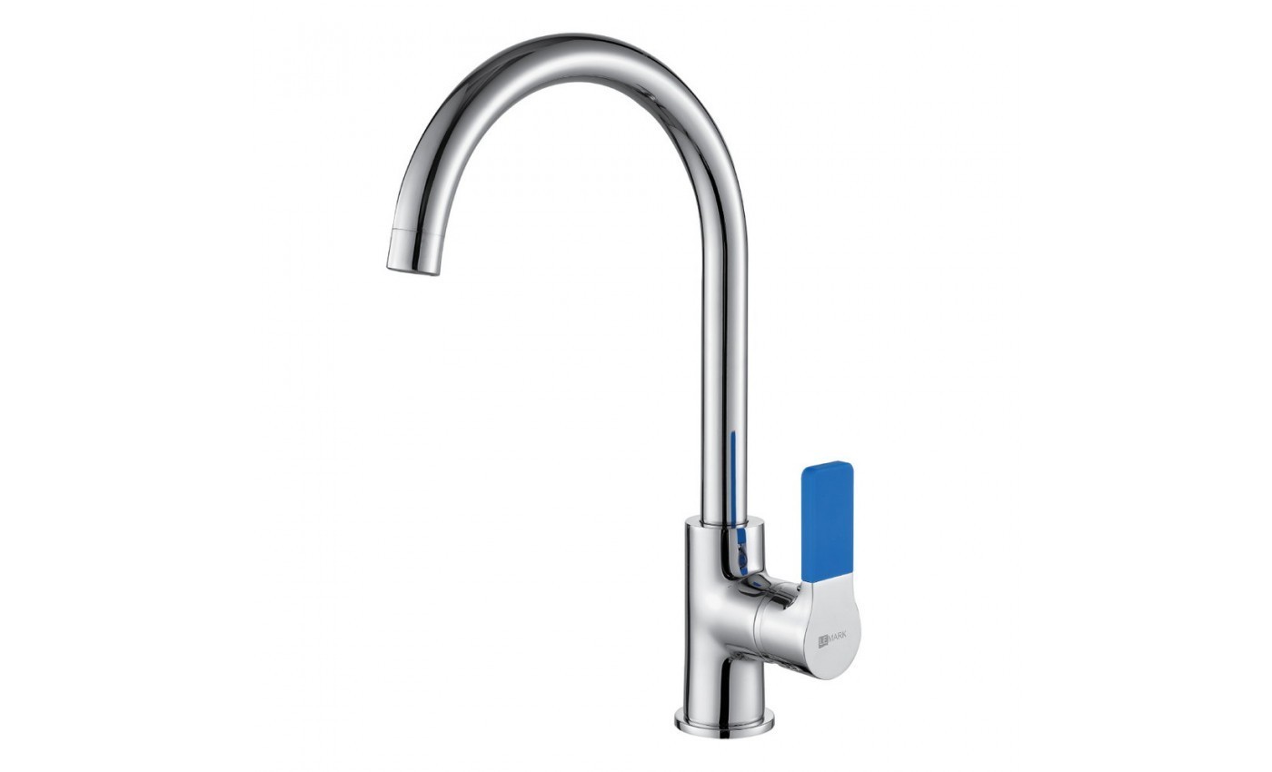LEMARK Смеситель для кухни Aura с поворотным изливом, хром\голубой LM0605C