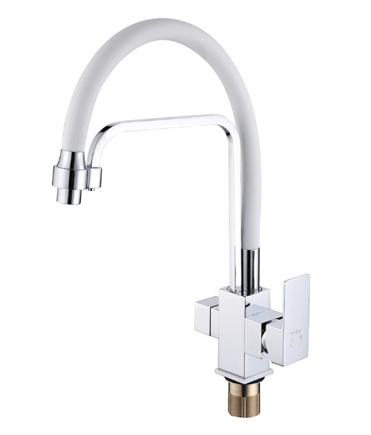 Смеситель для кухни ViEiR Kitchen с гибким изливом, белый\хром V15005F можно заказать в Севастополе, в Симферополе, в Ялте, в Евпатории и по всему Крыму.