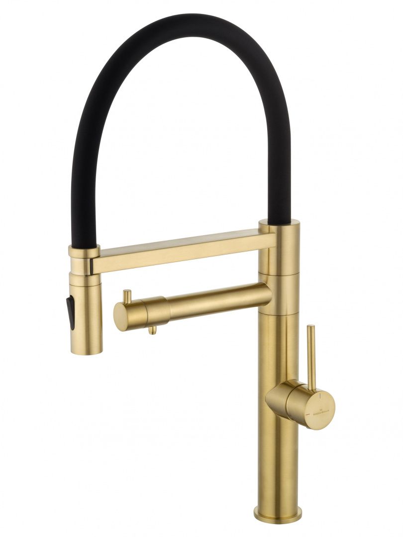 Смеситель для кухни с гибким изливом и подключением фильтра WONZON & WOGHAND, Брашированное золото (WW-88458007-BG)