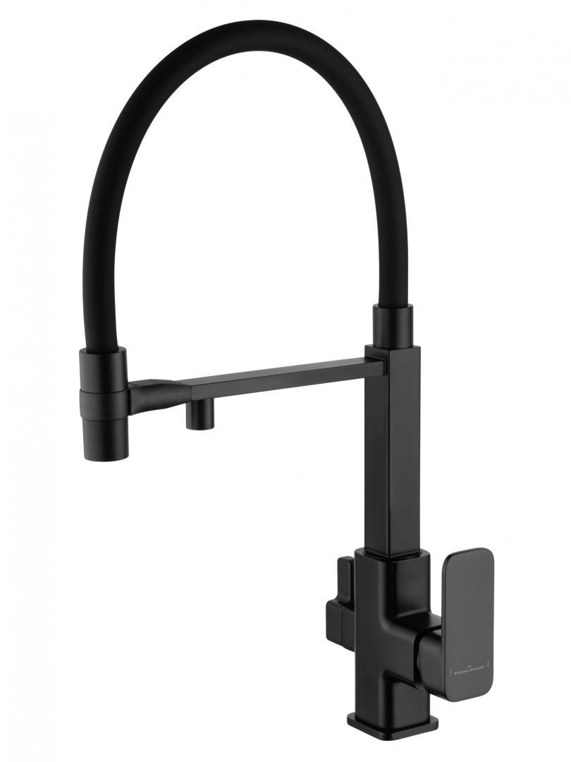 Смеситель для кухни с гибким изливом и подключением фильтра WONZON & WOGHAND, Черный матовый (WW-88458012-MB)