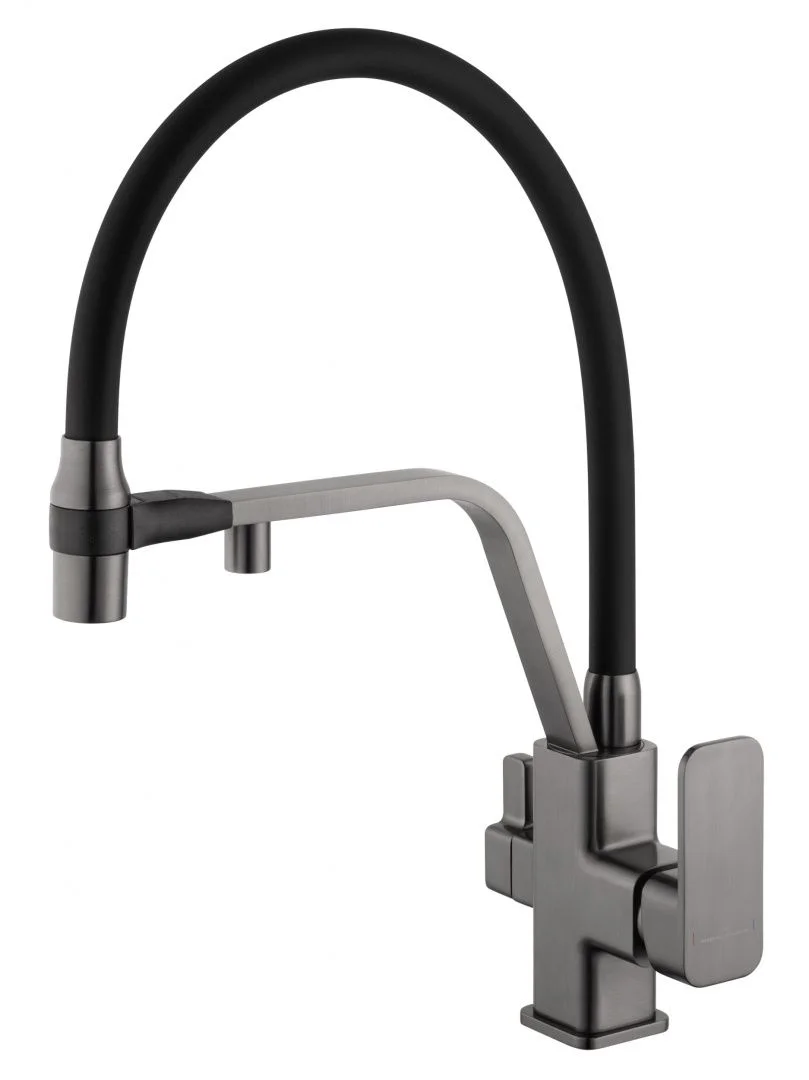 Смеситель для кухни с гибким изливом и подключением фильтра WONZON & WOGHAND, Темный графит (WW-88458013-BGM)