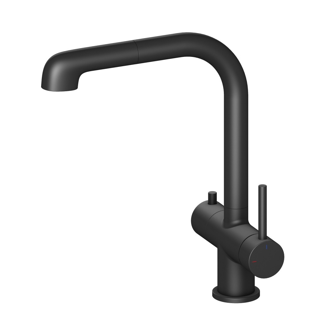 Смеситель для кухни с подключением фильтра и выдвижной лейкой Timo Saona 2346/03FL черный можно заказать в Севастополе, в Симферополе, в Ялте, в Евпатории и по всему Крыму.