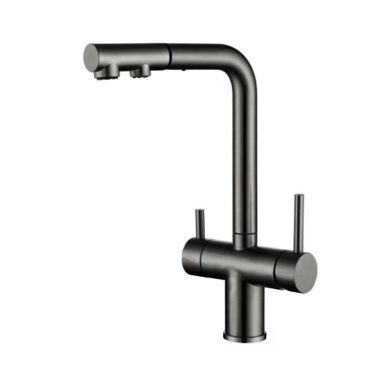 Смеситель с выдвижным изливом и подключением фильтра WONZON & WOGHAND, Темный графит (WW-88458018-BGM) можно заказать в Севастополе, в Симферополе, в Ялте, в Евпатории и по всему Крыму.