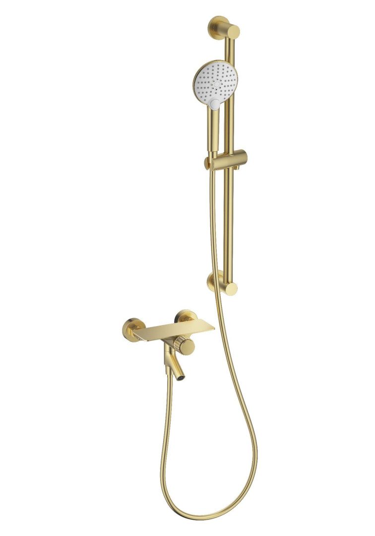 Смеситель для ванны с душевым гарнитуром WONZON & WOGHAND CLICK, Брашированное золото (WW-FE05L222-BG) можно заказать в Севастополе, в Симферополе, в Ялте, в Евпатории и по всему Крыму.