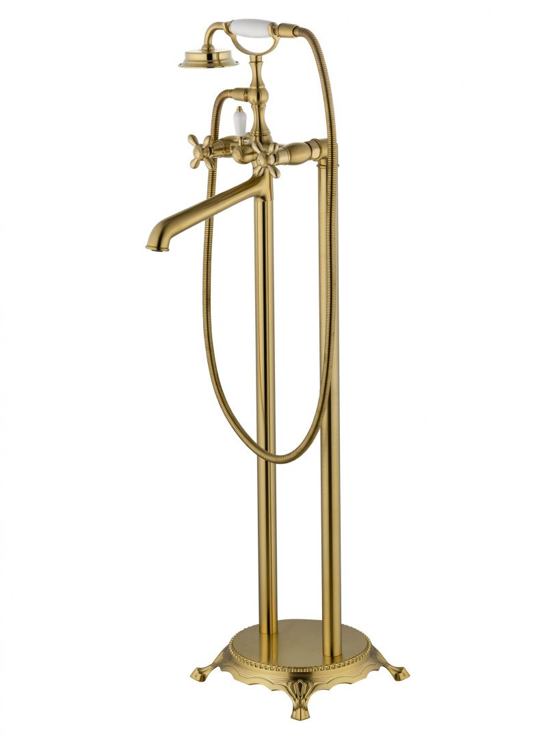 Смесители напольные для ванн и раковин WONZON & WOGHAND RETRO, Брашированное золото (WW-88649020-BG) можно заказать в Севастополе, в Симферополе, в Ялте, в Евпатории и по всему Крыму.