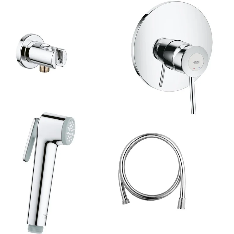 Готовый комплект для гигиенического душа GROHE BauClassic, встраиваемый смеситель, гигиенический душ со шлангом и держателем, хром (124901)