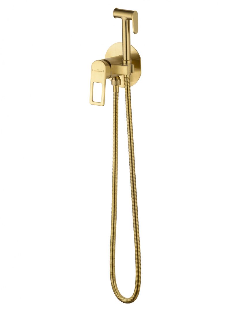 Смеситель с гигиеническим душем встраиваемый WONZON & WOGHAND FRAME, Брашированное золото (WW-88829010-BG)