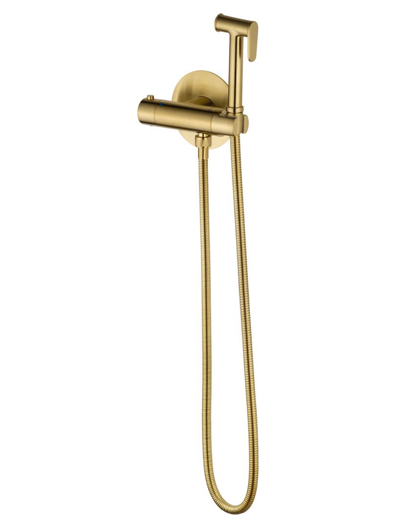 Смеситель с гигиеническим душем и термостатом встраиваемый WONZON & WOGHAND, Брашированное золото (WW-88819902-BG)
