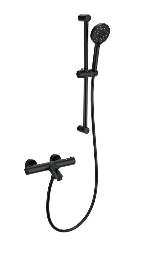 Смеситель для ванны с душевым гарнитуром и термостатом WONZON & WOGHAND, Черный матовый (WW-C2002-A-MB)