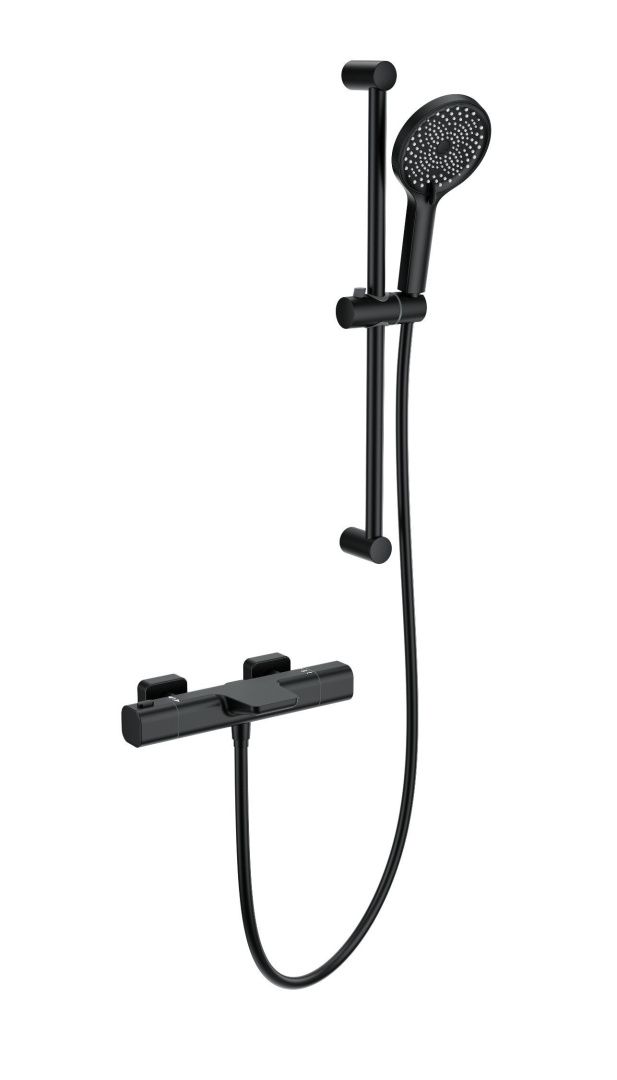 Смеситель для ванны с душевым гарнитуром и термостатом WONZON & WOGHAND Plate, Черный матовый (WW-C2017-A-MB)