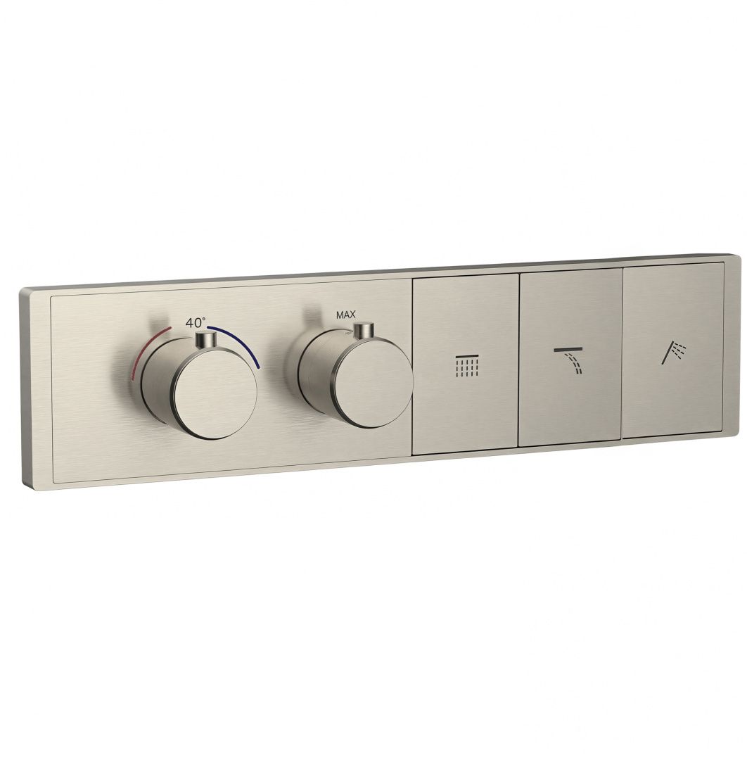 Термостатическая панель смесителя встраиваемая на 3 потребителя WONZON & WOGHAND, Брашированный никель (WW-INF163A-BN) можно заказать в Севастополе, в Симферополе, в Ялте, в Евпатории и по всему Крыму.