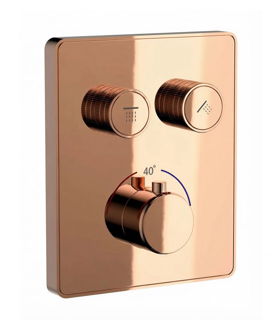 Термостатическая панель смесителя встраиваемая на 2 потребителя WONZON & WOGHAND, Розовое золото (WW-INF322A-RG)