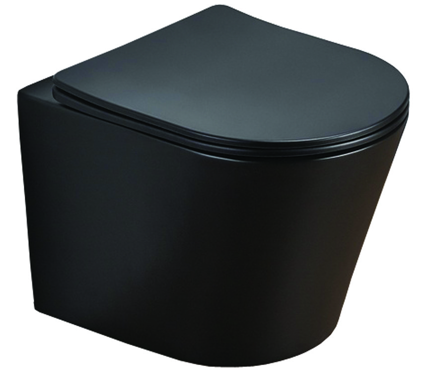 Azario Унитаз подвесной Teramo, безободковый с тонкой крышкой микролифт, черный матовый AZ-053E-R-MB