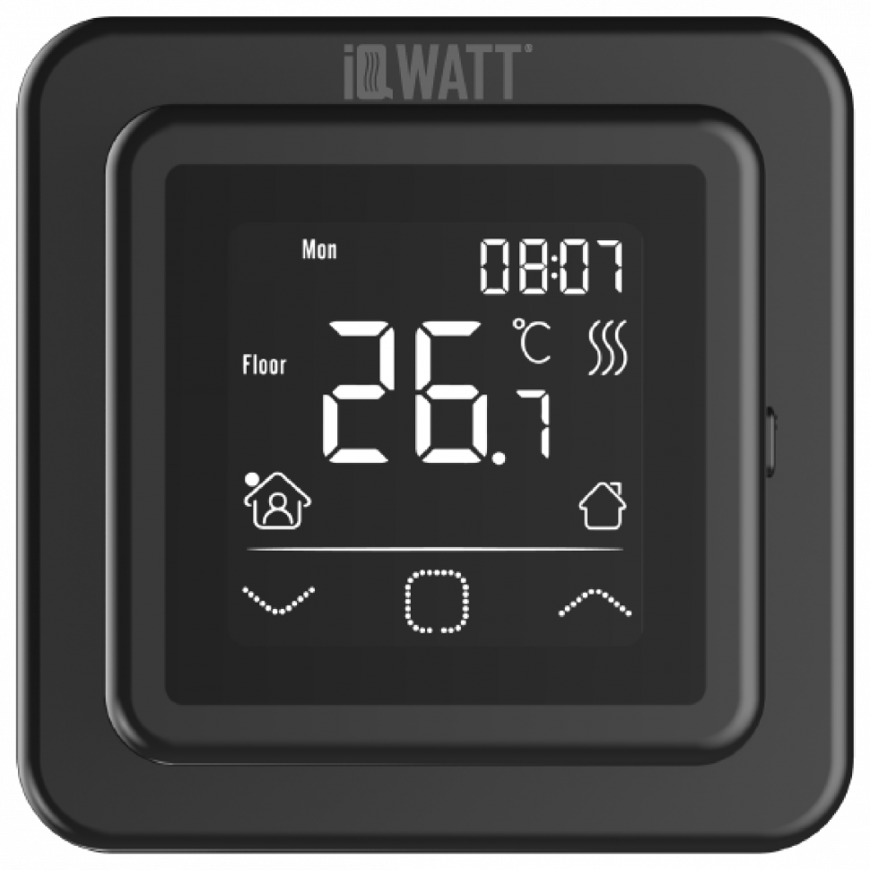 IQWATT Программируемый терморегулятор SMART HEAT BLACK с сенсорным дисплеем можно заказать в Севастополе, в Симферополе, в Ялте, в Евпатории и по всему Крыму.